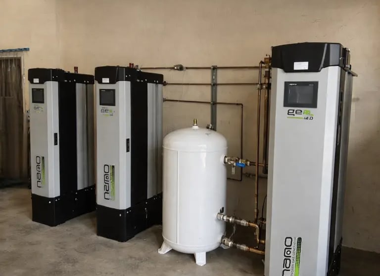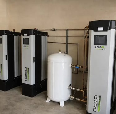 O jakości azotu i stabilności pracy decyduje też sprężone powietrze, osuszanie, filtracja, bufor i sposób zabudowy.